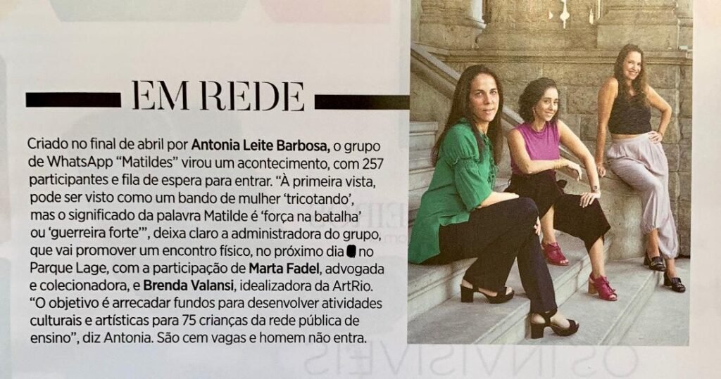 Teaser do segundo encontro das Matildes realizado no fim de julho no Parque Lage. O papo completo com Fábio Szwarcwald, diretor da EAV, a colecionadora e advogada Marta Fadel e Brenda Valansi, criadora da ArtRio,