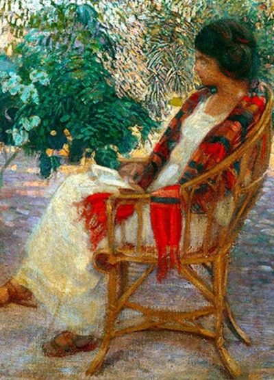 Fonte: “Figura feminina lendo ao ar livre”, de Carlos Oswald (1882-1971). Este óleo, de 1912, representa um momento fortemente impressionista na pintura do autor, embora a sua extraordinária obra no campo da gravura tenha deixado a sua obra pictórica num compreensível, ainda que nem sempre justo, segundo plano. Crédito: Coleção Particular.